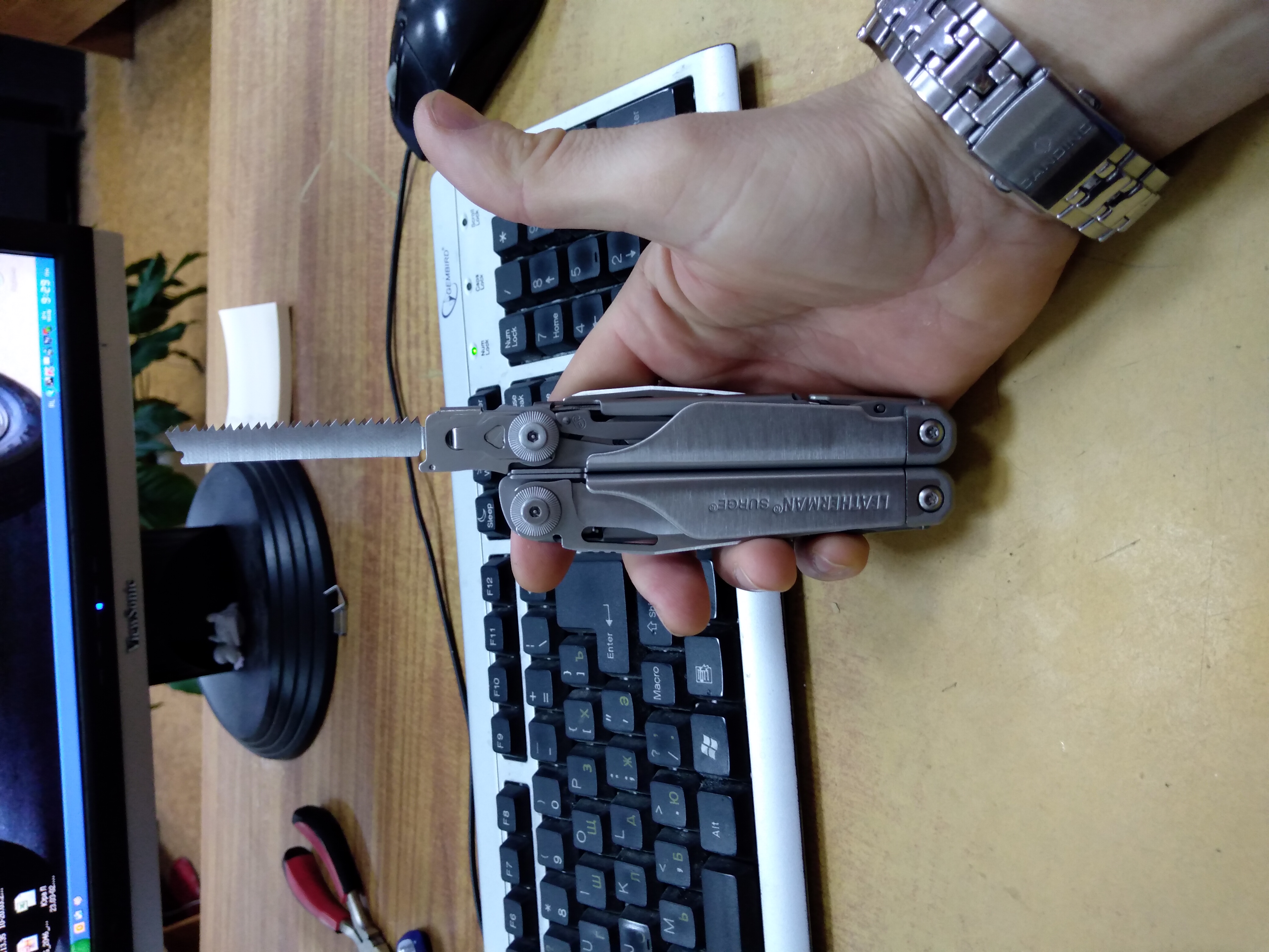 С мультитулом такой номер не пройдет - рукоятки пассатижей сложатся.